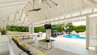 THE POOLSIDE GAZEBO IS ANOTHER FABULOUS SPACE FOR DINING AND ENTERTAINING.